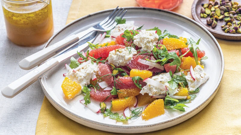 5. To make burrata salad: In bowl, combine Florida Grapefruit and Orange segments; add radish sticks, toasted pistachios, arugula and dill. Season with salt and pepper, to taste.